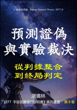 《預測證偽與實驗裁決》做的正是這件事:把前七卷關於微觀對象、傳播、場力、量子讀出、宏觀宇宙與極端對象的主張,統一壓成一套可以逐項核對的判決語法。它會把預測、對照、誤差源、平台窗口、觀測鏈、實驗鏈以及最終裁決標準放到同一張表裡,讓 EFT 從“有解釋力”真正邁向“肯受審”。這卷的重點不是再擴展世界觀,而是把世界觀送進審計間,要求它在公開條件下接受比較、加壓與失敗的可能,並把“支持、收緊、結構性受損、暫緩裁決”這幾種結果分得清清楚楚。