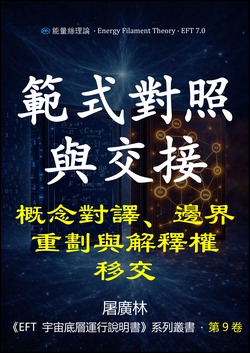 這也是整套書最後必須有這一卷的原因。沒有這一步,再宏大的世界圖景也容易停留在自我宣言;有了這一步,EFT 才真正進入一種成熟狀態:它既敢與舊框架同台比較,也敢明確說出哪些地方只是翻譯層,哪些地方才是本體層,哪些地方應該完成真正的交接。卷名裡的“對照”與“交接”,說的也正是這件事:先把兩套語言逐項擺平,再把該保留的工具、該降級的腳手架、該重寫的本體解釋一件件移交。它不像口號那樣響亮,卻比口號更有分量。